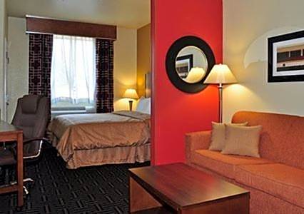 Wider doorways, a raised toilet seat, and a bathroom with grab bars are featured in this wheelchair accessible suite.
